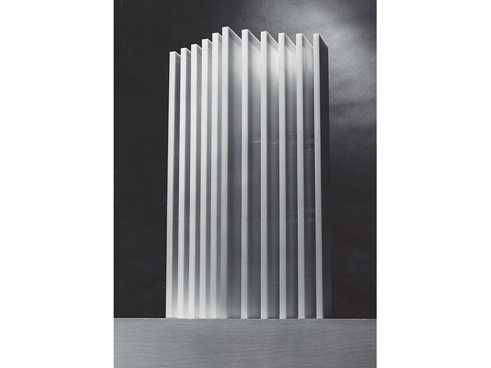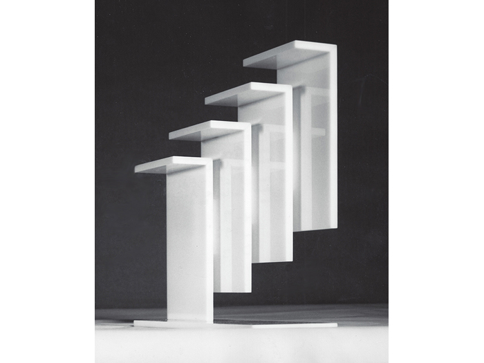 "...Constructions in pure white plastic of an absolute purity in the simplest geometrical forms."
