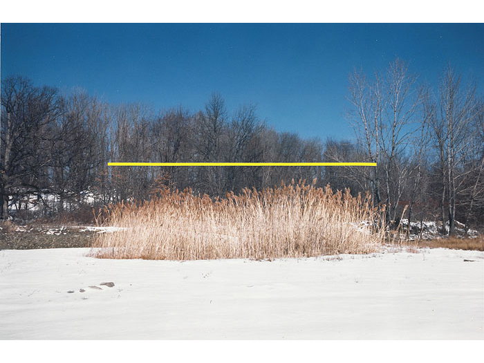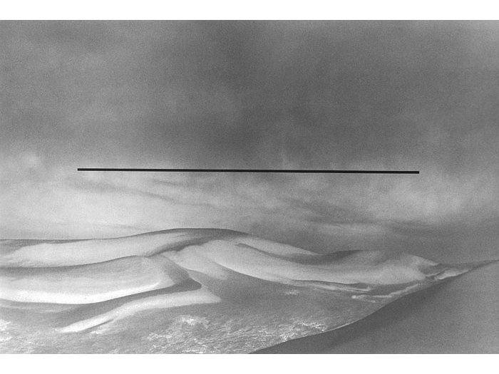 Realizing the superior impact of photography in creating an illusion to natural reality, he soon used photographs to achieve the images he sought. Over photographic images of landscapes, Greenly imposed abstract "energy" of apparently great scale, creating "intangible sculpture". Above these real, but generalized, poetic landscapes are "bars", clearly incorporeal, which set up an almost electrical tension or exchange of energy with the land below. Clearly, these works are part of the same search that led to the discovery of the Primary Transitional Symbol. Nature, space, energy, time, and spirit are united in each work to build an art form that is endlessly evocative and free from the struggles of the ego that created or perceives it."