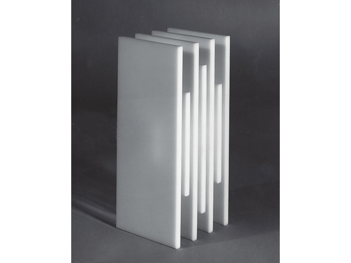"...Constructions in pure white plastic of an absolute purity in the simplest geometrical forms."